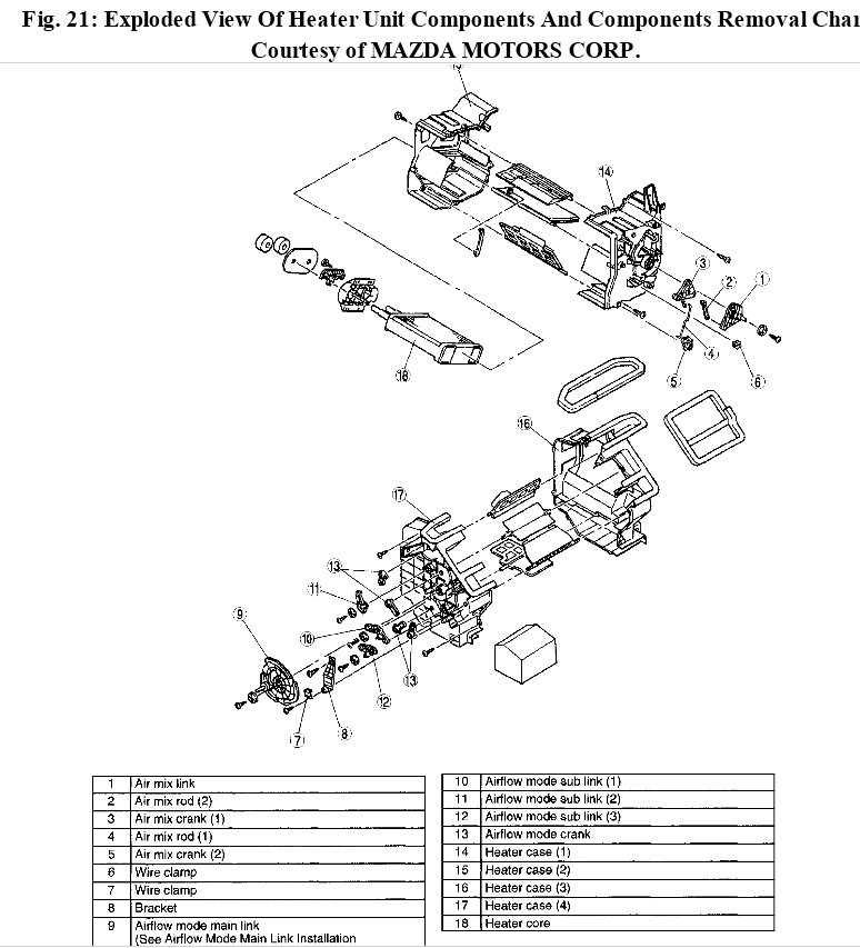 Here is a diagram of the heater unit in your car, if you heave the automatic controlled unit let me know as it is slightly different but not really for your purpose, use it to identify the heater door and in the next post is the checklist that you should run through to make sure all components are working and adjusted properly.