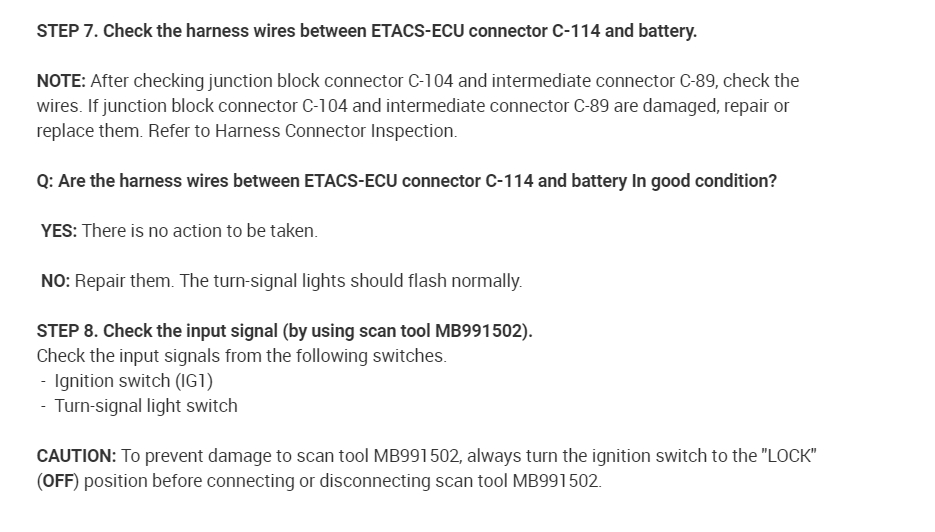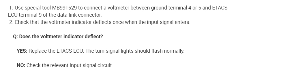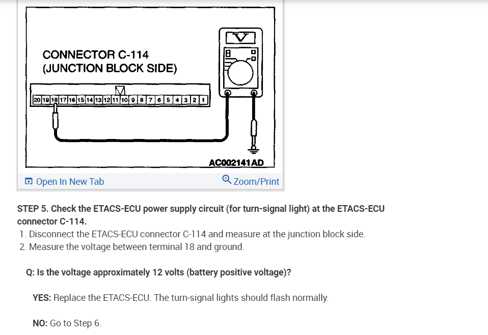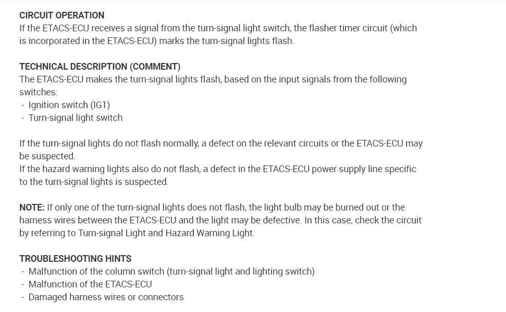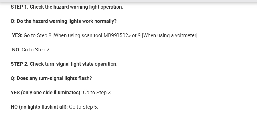 In the diagrams down below I have included the diagnostic troubleshooting guide from the vehicle manufacturer for your vehicle's turn signals being inoperative. This troubleshooting guide will require you to use a Digital Multi-meter [DMM], so here is a link below explaining how to use a DMM down below, if needed: