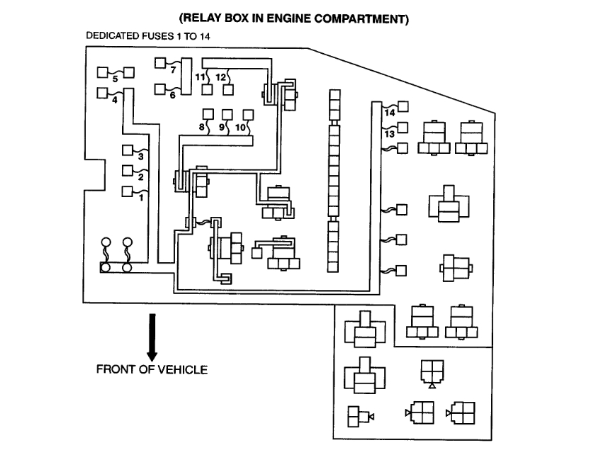 This would be the Under hood Fuse Box in the engine compartment. In the diagrams down below I have included the Under hood Fuse Box [Dedicated] diagram and callout for you. Please go through this guide and get back to us with what you are able to find out.