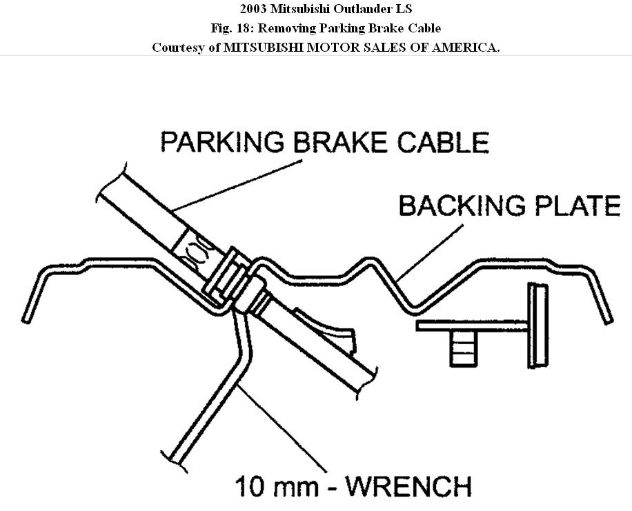 2. Using a 10-mm wrench, withdraw the parking brake cable from the backing plate. See Fig. 18 .
