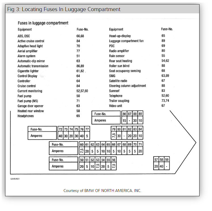 where is the fuse layout for a 2004 530i bmw i know where fuses are ,but they are not marked