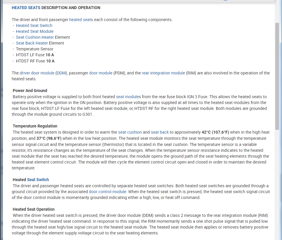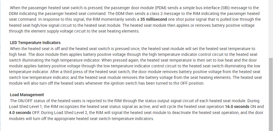 If you review this material you will see that that switch inputs run from the switch to the door module. Then from the door module to the rear integration module which sends a direct signal to each of the heated seat modules to turn them on either hi or lo.