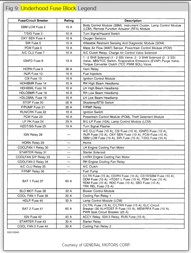 Here is the fuse box and relay box to help you get the problem fixed. Diagrams below: