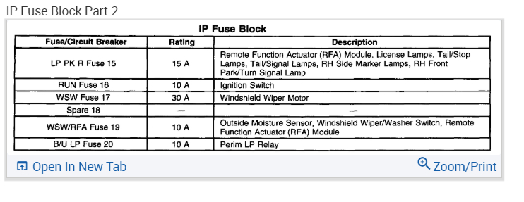 1 - Circuit Breaker - Power Windows, Sunroof