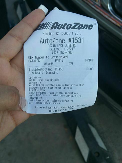 I recently turned my truck on this morning and the engine light poped up i went and checked for codes at auto zone and the P0455 code popped up and it gave me 4 options on the receipt not sure were to start or what to do.