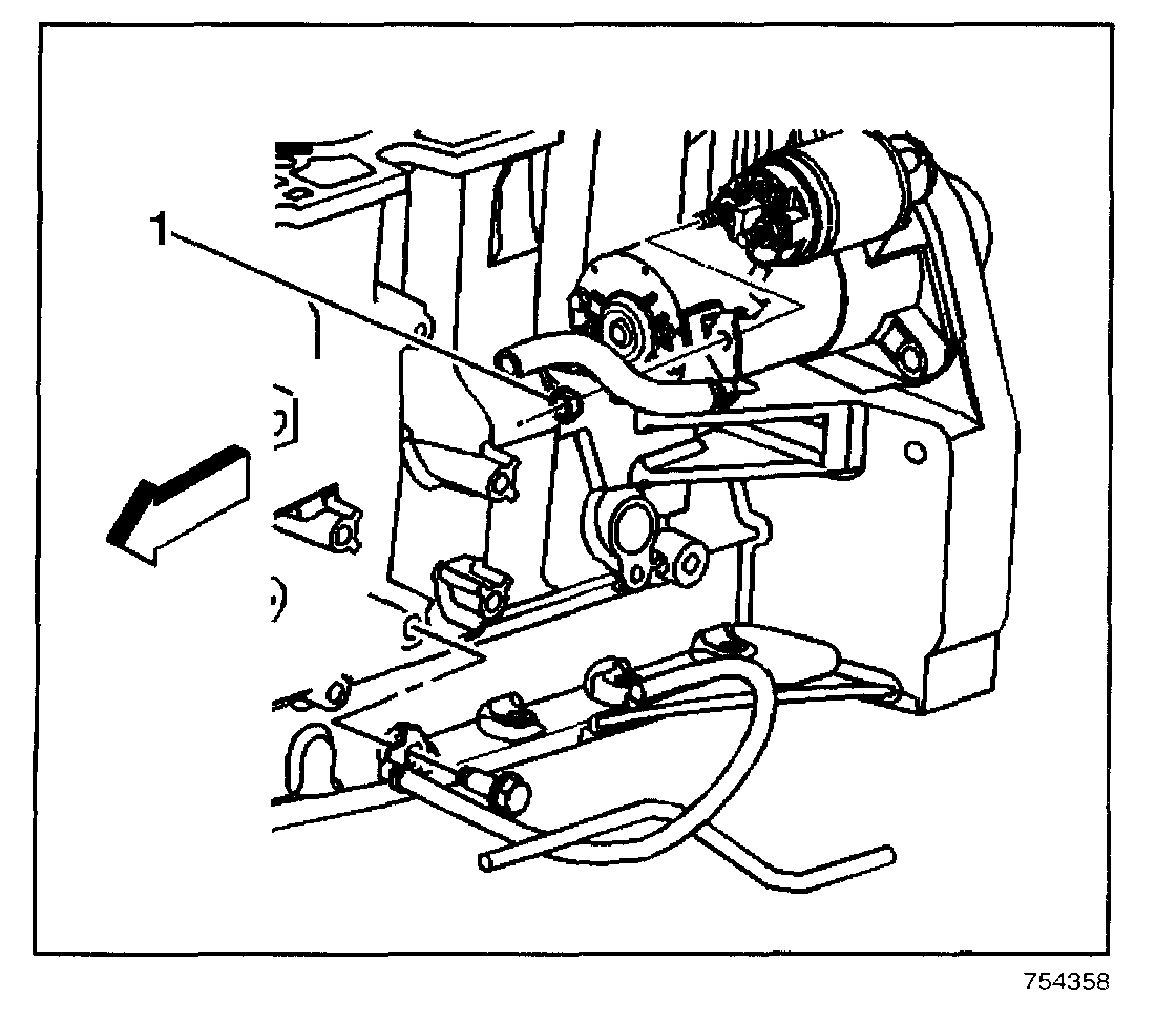 4. Remove the starter solenoid S-terminal lead nut (1) from the solenoid.
