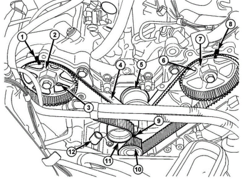 12. If timing belt is to be reused, mark belt running direction.