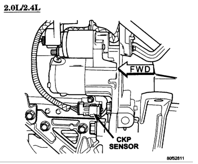 Where is the crankshaft position sensor located on a 2004 2.4l dohc Chrysler sebring?