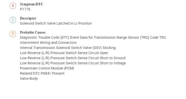 P1776 Transmission solenoid switch valve lacked L/R Position
