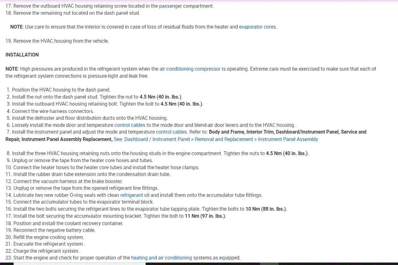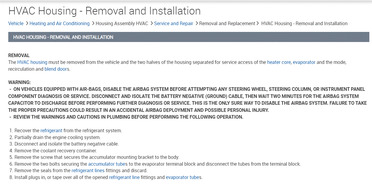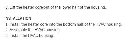 This is a somewhat large job. It will require the removal of the HVAC housing under the dash. Also, you will need to recover the freon from the AC system first. I will start with the directions for that and end with the removal and replacement of the core.
