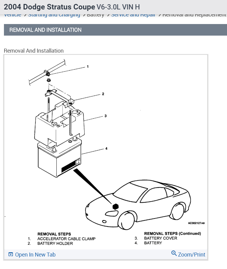 Sedan or Coupe 2004 Dodge Stratus Sedan L4-2.4L Battery Location