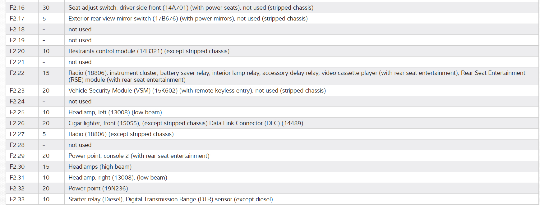 I have the van listed above E250 and the dash illumination and night time running lamps don’t work. My headlights and brake lights still work.