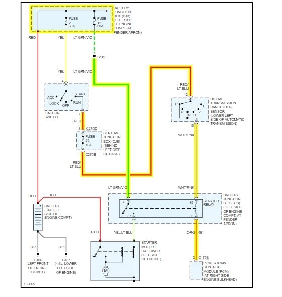 Okay, that's good. Now could you please check fuses 12 and 23 in the Battery Junction Box of your vehicle. I have included the location of the Battery Junction Box, it's fuse/relay layout with callout, and a wiring diagram of your vehicle's starting circuit in the diagrams down below. Please go through these guides and check the fuses and get back to us with what you find out. We can go from there. Here is a link below, if needed, on how to check a fuse: