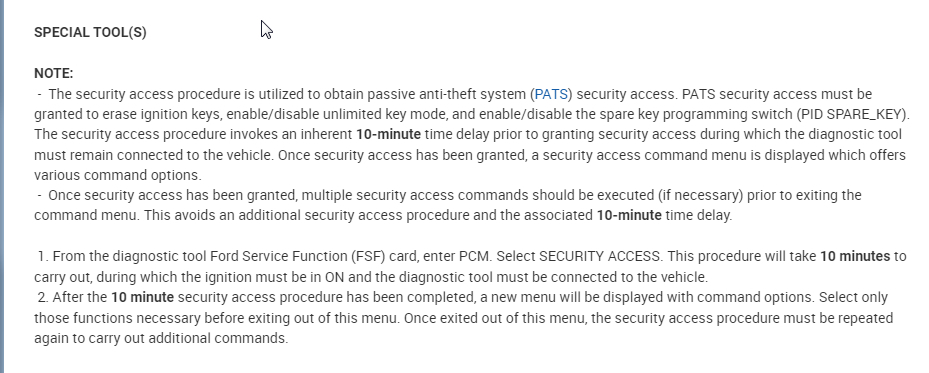 took car to Ford dealership. problem was the PATS. some how chip in key became corrupted and wiped out part of the pats programming. my son only received one key when he bought it, so Ford dealership hooked up to diagnostic computer and it went crazy. they were able to fresh flash computer and program a new key, and tossed the other to the side for unlocking only. service manager has thirty five years under his belt and has only came across this type of problem. new PATS programming and new key and runs great. $112.00 key included. whew!