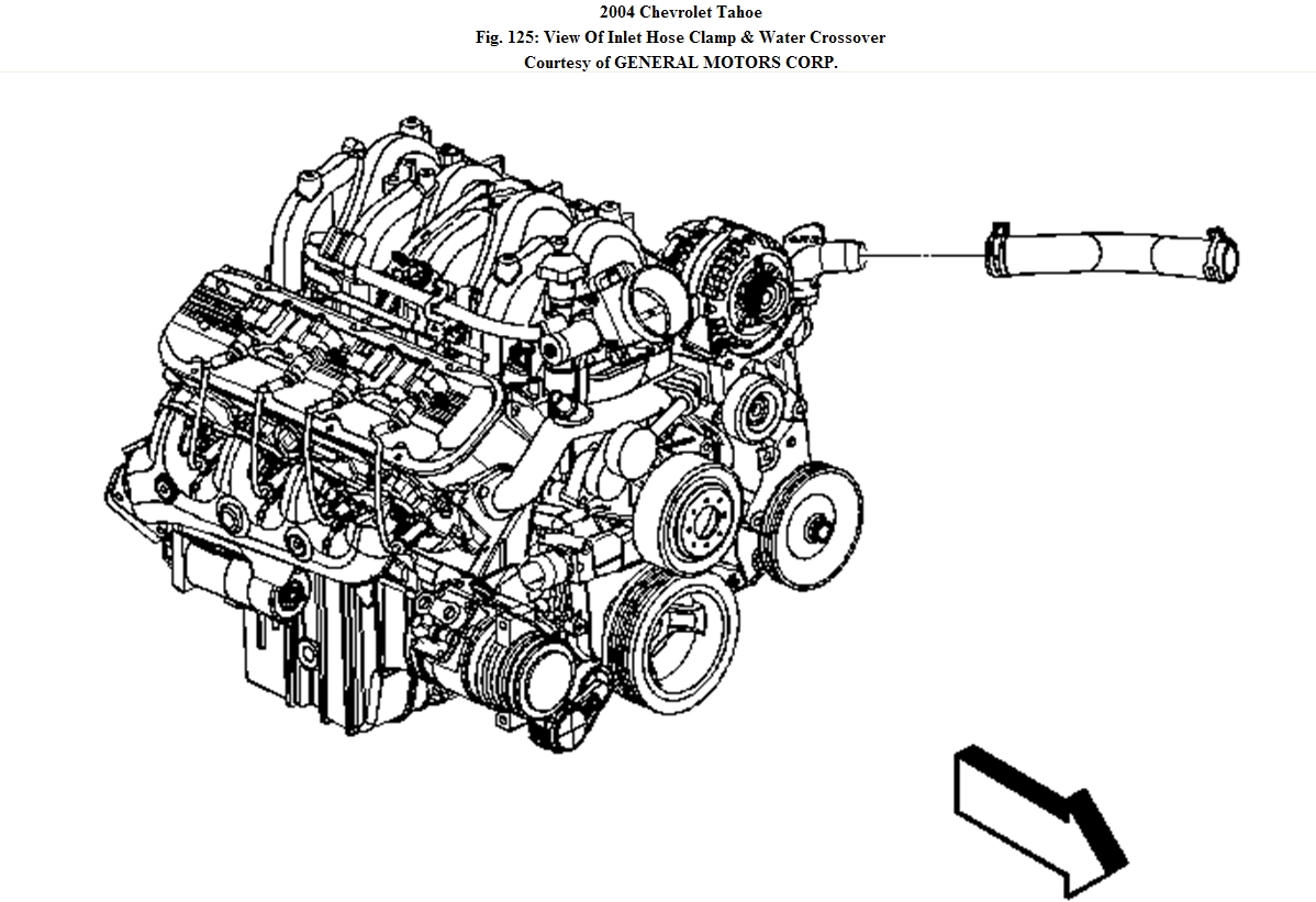 Fig. 125: View Of Inlet Hose Clamp & Water Crossover