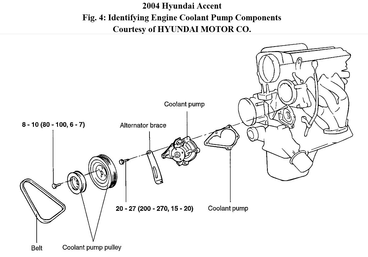 2. Remove the drive belt and engine coolant pump pulley (loosen pulley bolts before removing drive belt).