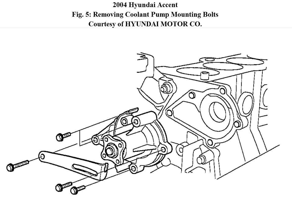 4. Remove the coolant pump mounting bolts, then remove the alternator brace.