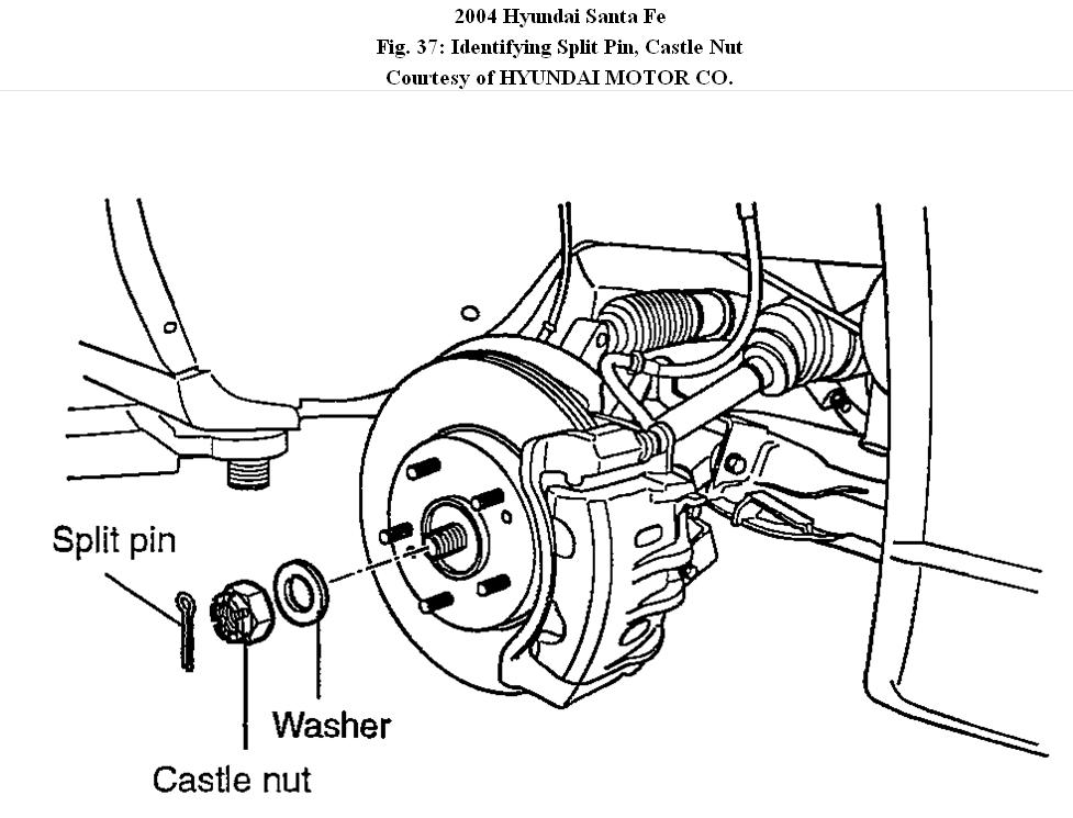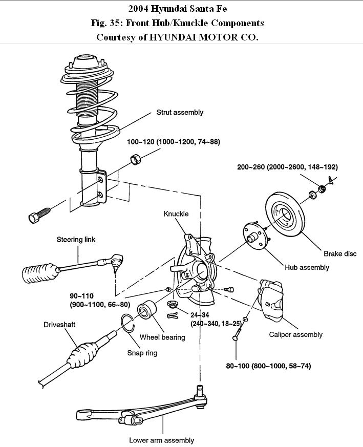 Do you have a diagram of the front wheel assembly for a 2004 Hyundai Santa Fe that you could share?
