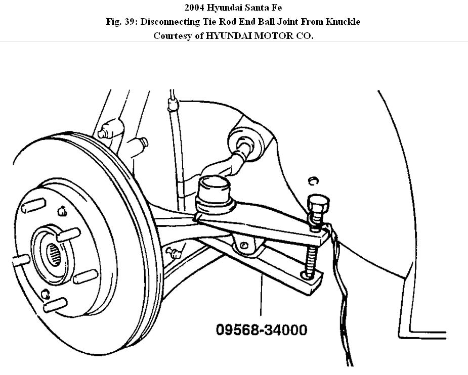 6. Disconnect the tie rod end ball joint from the knuckle using the special tool (09568-34000).