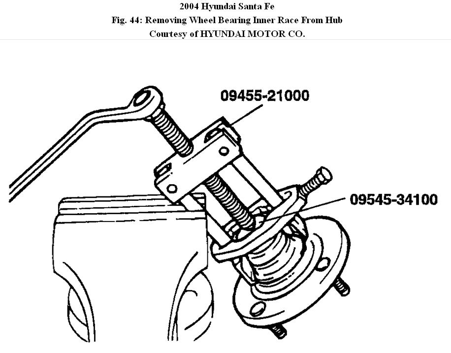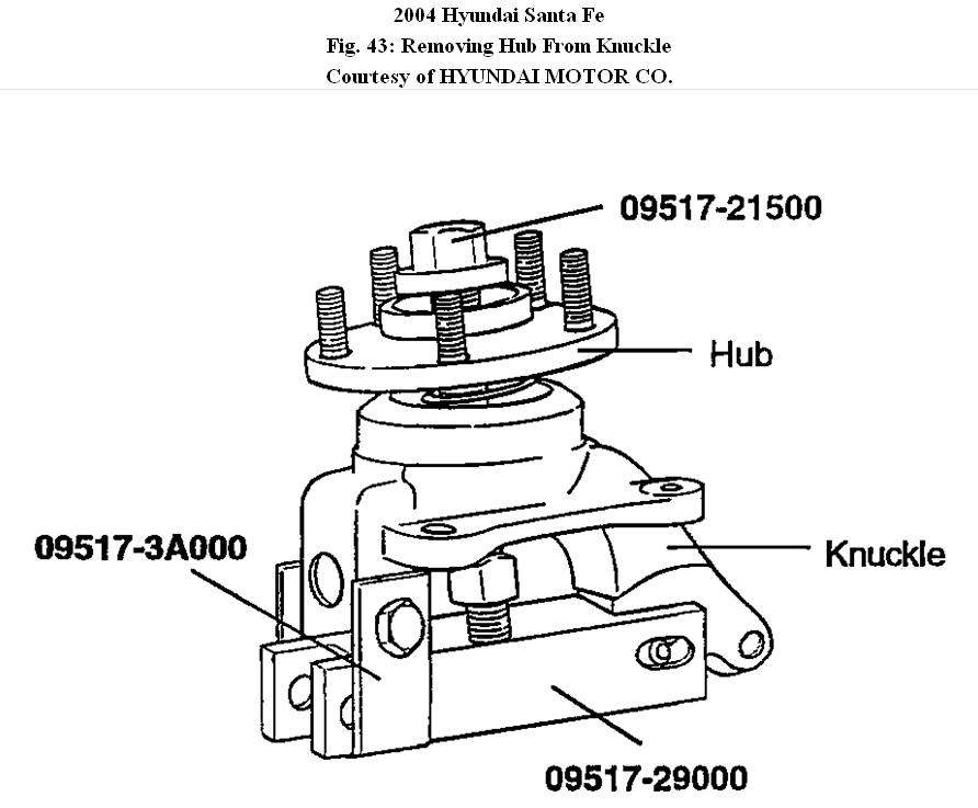 3. Remove the hub from the knuckle using the special tools (09517-21500, 09517-3A000, 09517-29000).