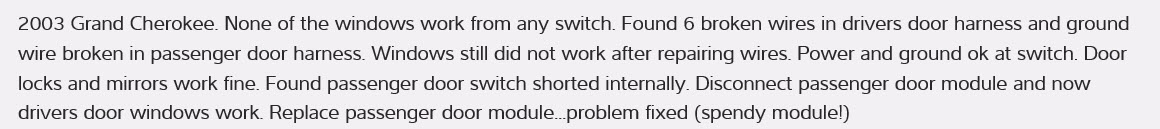 A year ago I was told by a Jeep dealer that the wires (thick black and pink wires) in the boot of the door were broke from wear. I believed they were cut. Anyway, I was able to get the wires connected and the windows worked. I did this twice (each time the wires slipped from the connectors). This is third time I connected them nothing worked.