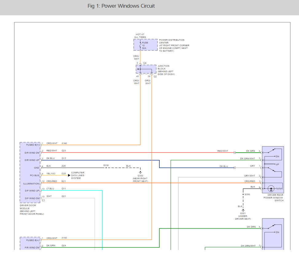 Just to add, the wiring harness that goes into your driver door on the hinge side probably has protective rubber boot covering. Pull the covering back far enough to see wire colors. Orange wire with white tracer is voltage for power windows, hot all the time. Use a test light to check for voltage. The black wire is ground, check it also.