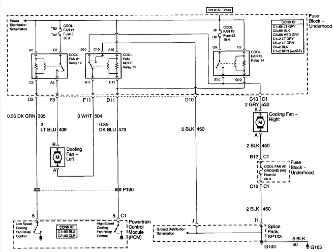 well where does the main wire connect to in order for the fans to work because when i purchased the car, the wire was connected to the fuse relay. it has been giving me problems from time to time and i need to know if the wire belongs on the fuse relay or in a certain spot. my wire is purple, but i'm talking about the main wire that makes the cooling fans work because if i take the wire off the fuse than the fans doesn't work.