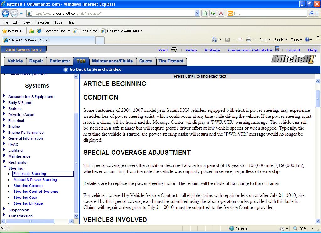 2004 Saturn Ion 3, Hard steering on and off