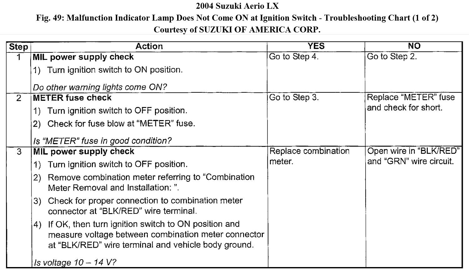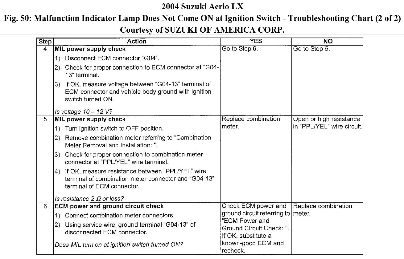 MALFUNCTION INDICATOR LAMP DOES NOT COME ON AT IGNITION SWITCH ON (BUT ENGINE AT STOP)