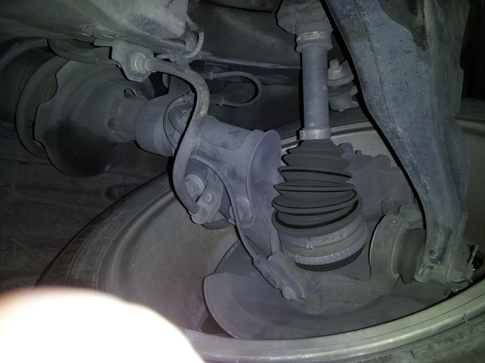 The pink arrow is pointing to the outer anti-sway bar link. The bottom ball has popped out of the socket so the entire link must be replaced. This part doesn't have any affect on the alignment, it has nothing to do with the wheel being tipped, and doesn't have to be replaced before the alignment is done. It DOES show that the front end took a pretty good wallop to break that joint.