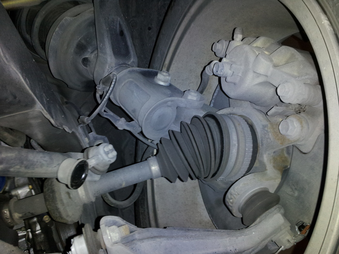 After a severe hit like this, most mechanics will want to replace the lower ball joint to insure a proper repair. The white arrow is pointing to the dust boot covering the stud that can be bent. The stud must be removed from the spindle to be inspected, but you'll only know for sure it's bent if it has a "Z"-shaped bend. It can also easily be bent in such a way that is very hard to see. The impact will have pounded a lot of sideways stress on the nylon insert in the socket. That will cause some looseness that will grow faster and faster with each bump you hit in the road. Any sideways movement between that ball and socket will prevent an alignment from holding so no conscientious mechanic will even try to align a car with a sloppy ball joint.