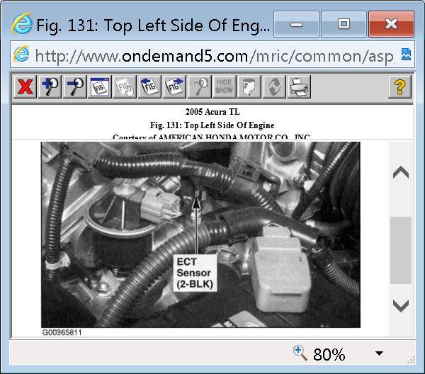 2005 acura tl automatic i swapped the relays fan still didnt work if i put ac on both come on new water pump new thermostate new rad cap . this just started about 5 days ago. i would like to go after the ect sensor i just dont know the location. thk you for help. or a diagram would help.