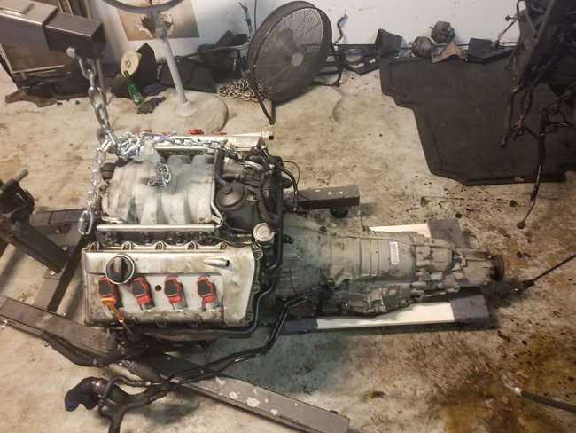 Bolt transmission to engine and install engine/transmission. Refer to => [ Engine, Installing ] See: Service and RepairRemoval and ReplacementEngine, Installing.