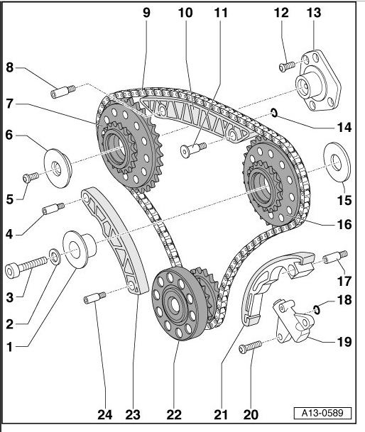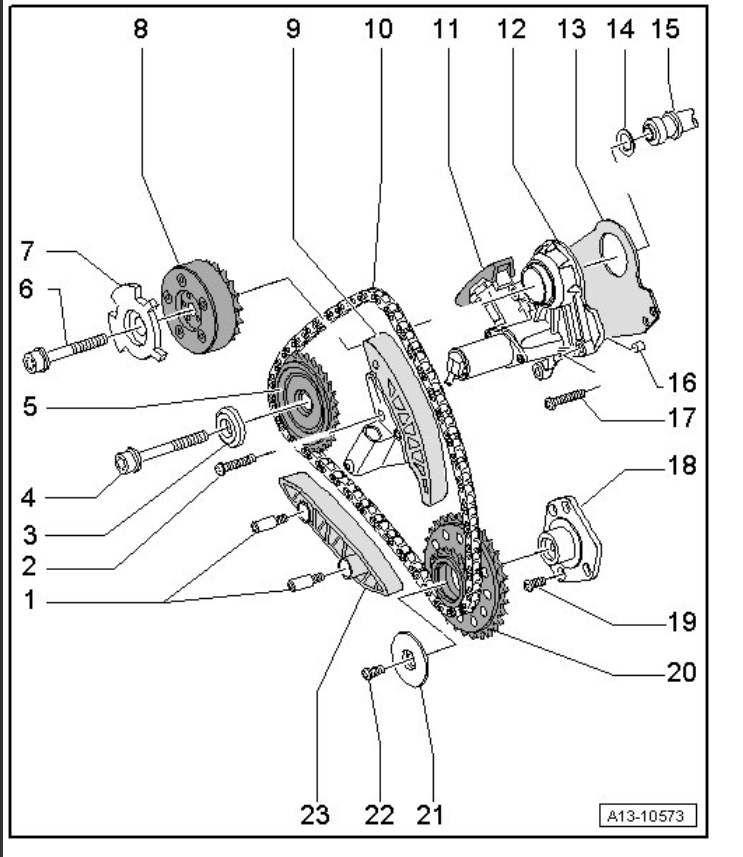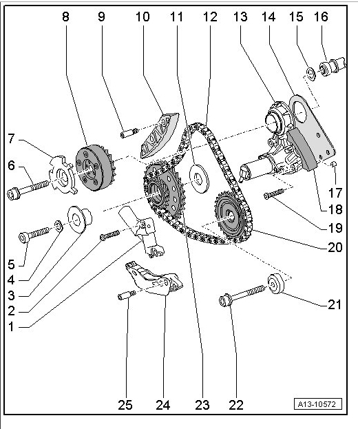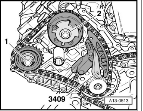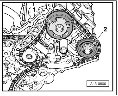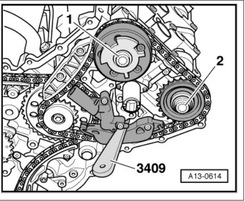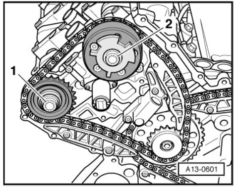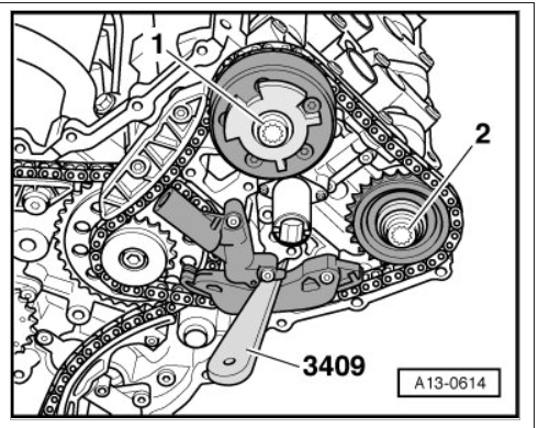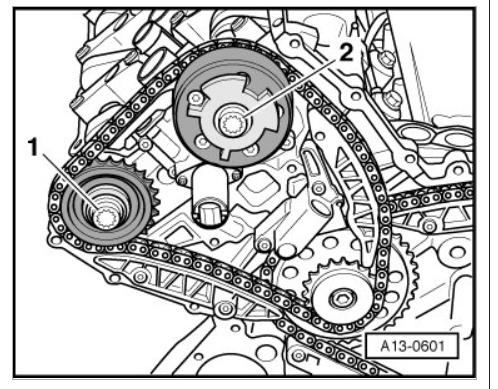 ¤ Chain sprocket and camshaft adjuster must be able to still be rotated on camshaft and must not tip.