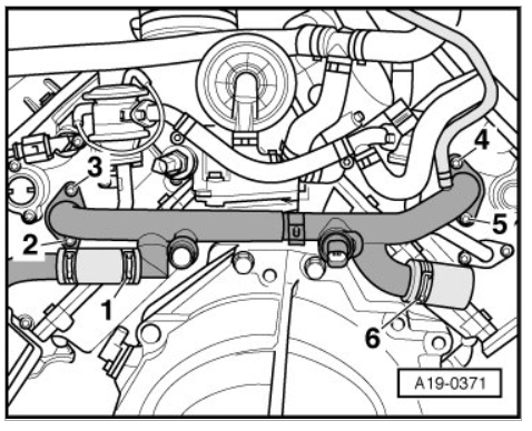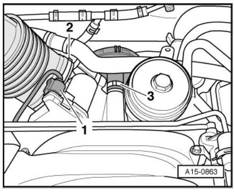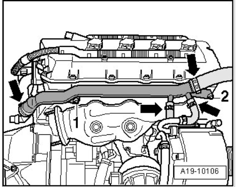 Disconnect crankcase ventilation hose - 3 - at the intake pipe.