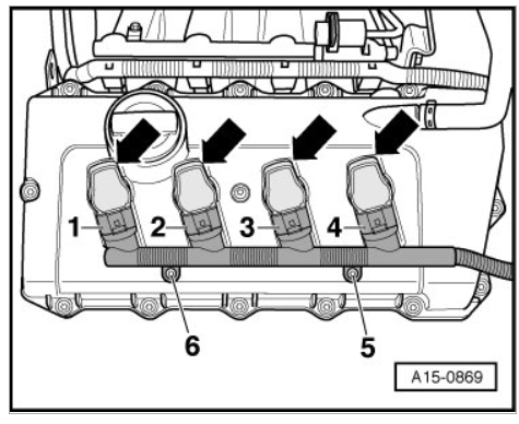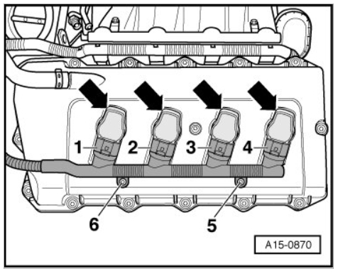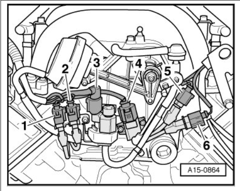 Pull off the connector strips - 2 and 3 - at the 8 fuel injectors.