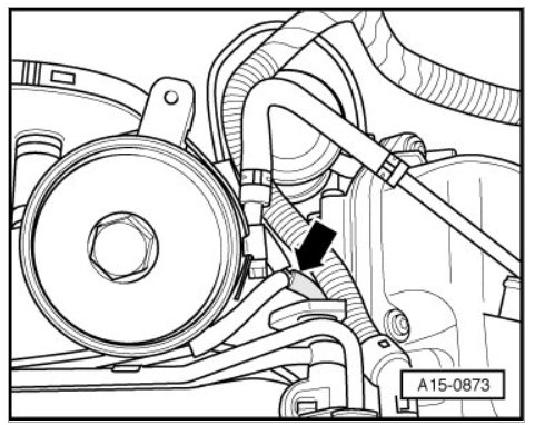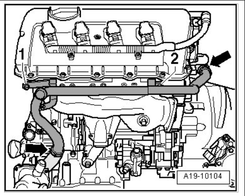 Disconnect crankshaft housing ventilation hose - arrow -.