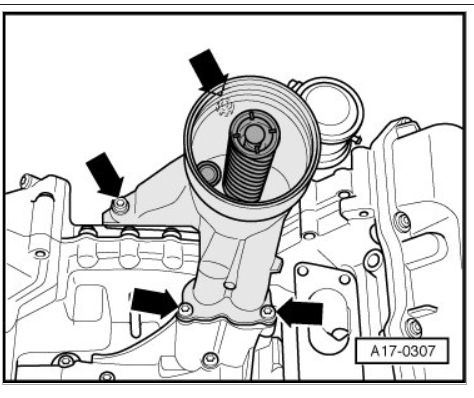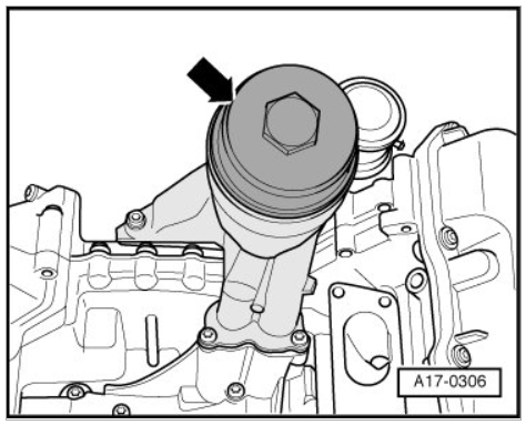 Extract engine oil using (V.A.G 1782) from oil filter housing.