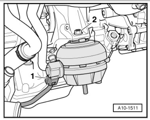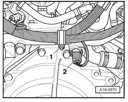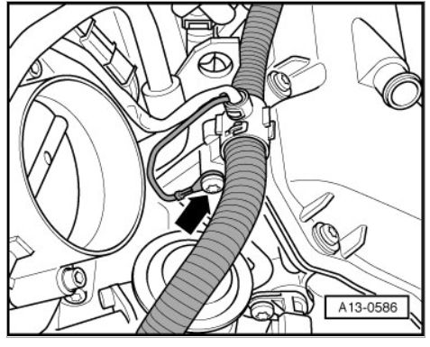 Remove nut - 1 - and remove electrical wiring harness at rear coolant pipe.