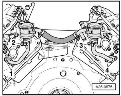 Remove Secondary Air Injection (AIR) system combi-valve mounting bolts - 1 through 4 -.