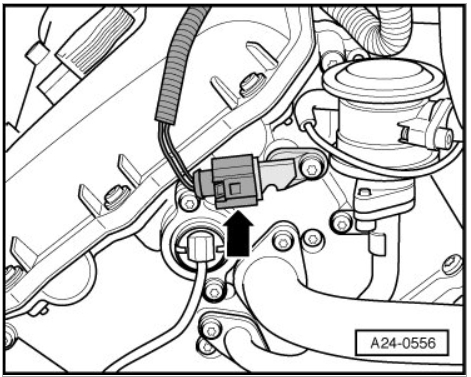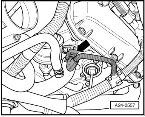 Disconnect electrical harness connector - arrow - for Camshaft Position (CMP) Sensor (G40) on right cylinder head.