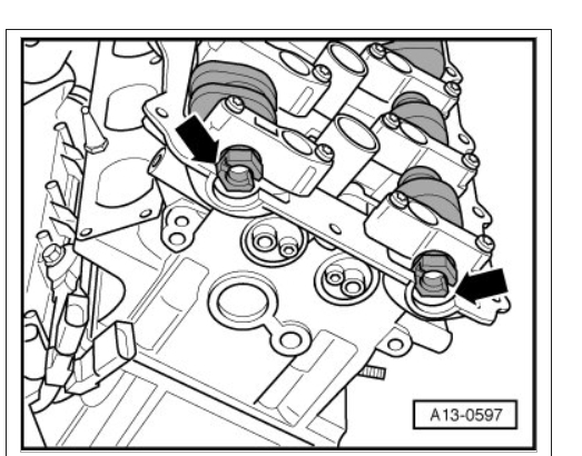 Tighten camshaft bolt - 2 - on the exhaust camshaft of the right cylinder head to initial tightening specifications. Tightening specifications: 40 Nm.