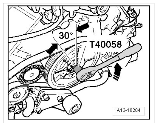 Using (T40058) , rotate crankshaft approximately 30°in opposite direction of engine rotation - arrow -.