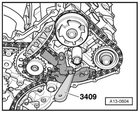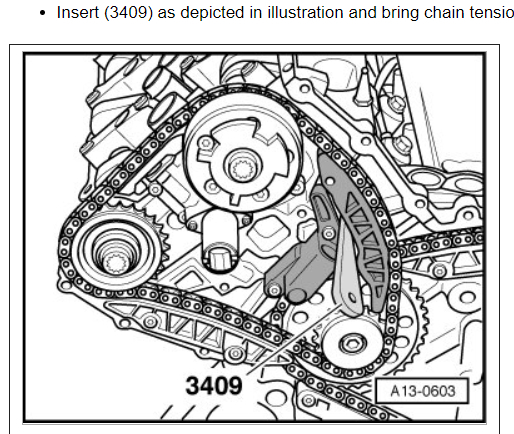 Insert (3409) as depicted in illustration and bring chain tensioner into contact with (3409).