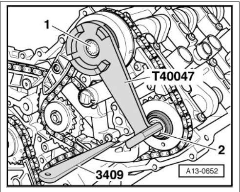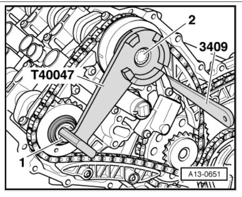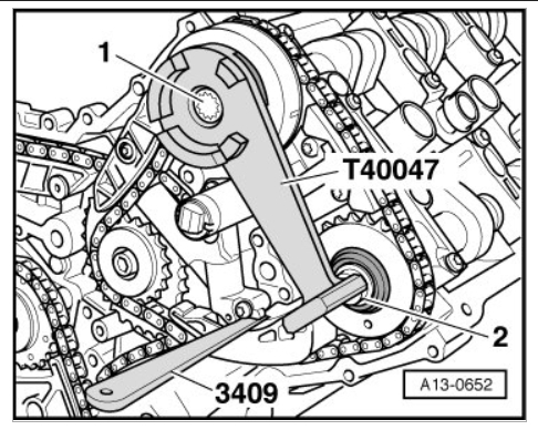 ¤ (T40046) must not be used as counter holder for final tightening of the camshaft bolts.