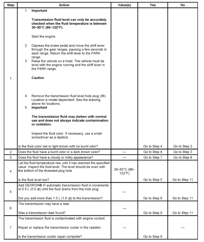 ^ If the transmission fluid is below or between 30°C - 50°C (86°F - 122°F), continue with the next step.