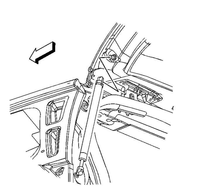 NOTE: Apply pressure only at the end of the liftgate assist rod that you are removing or attaching. Do NOT apply pressure to the middle of the rod because damage or bending will result.