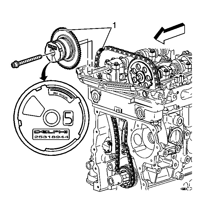 (align the marked link (1) in the timing chain with the timing mark (1) on the exhaust camshaft position actuator sprocket. See pic attached.