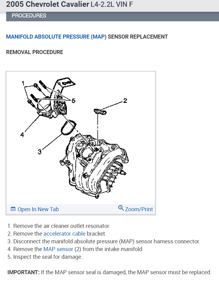 9 times our of 10 the MAP sensor needs to be replaced. here is guide to help walk you through the repair and diagrams below to show you on your car. Check out the diagrams (below). Please let us know what happens.