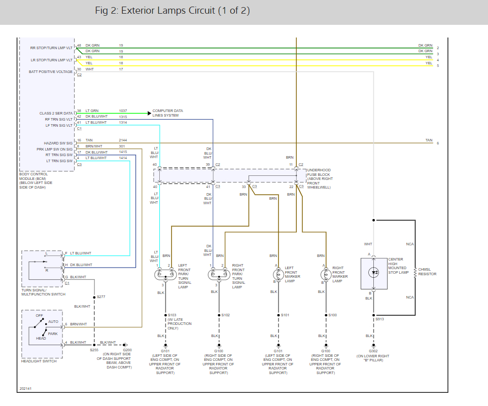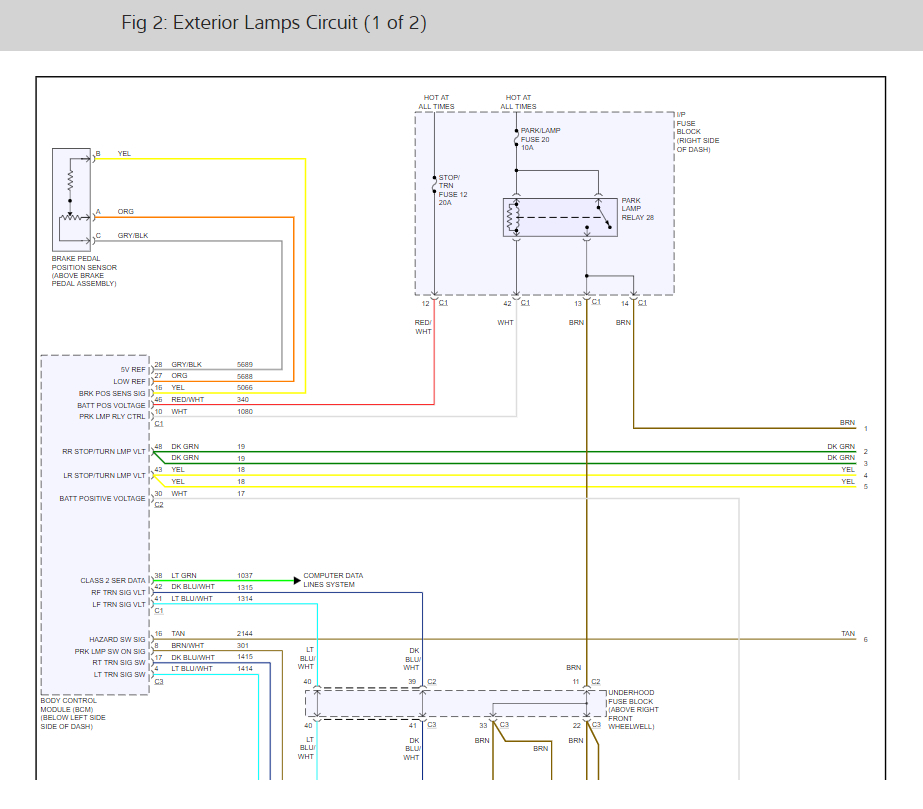 Check the park lamp fuse #20 10 amp and the park lamp relay. Here is a guide to help check the fuse and the wiring diagrams below so you can see how the system works with the fuse location as well.